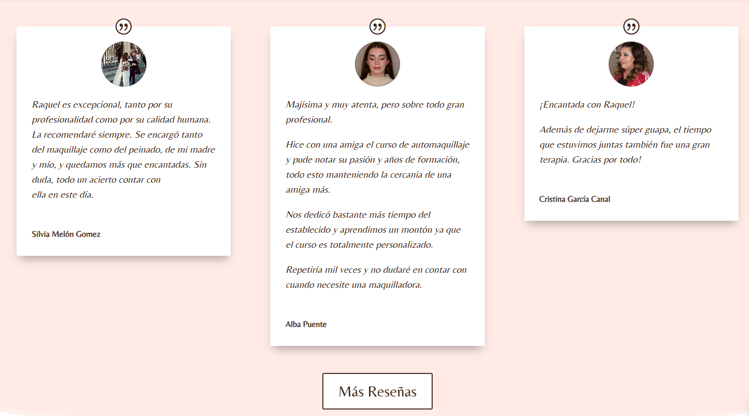 Contratar los servicios de esta empresa ha sido todo un acierto. Yo ya tenía una página web pero no estaba nada contenta con ella. Entendieron a la perfección lo que buscaba, es muy fácil la comunicación con ellos y siempre están dispuestos a ayudar. Cada vez que necesito añadir o cambiar algo les falta tiempo para hacerlo!! Mi web es increíble gracias a ellos. Sin duda, recomendados al 200%